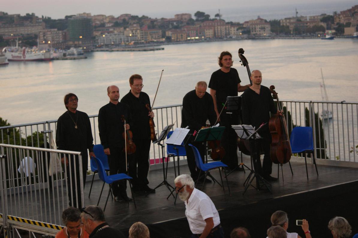 Poi è stata la volta della musica di Rossini e di Stravinskij, ed è proprio a questo punto mentre il sole calava che la musica sembrava scritta per questo tramonto sulla rada di Portoferraio.