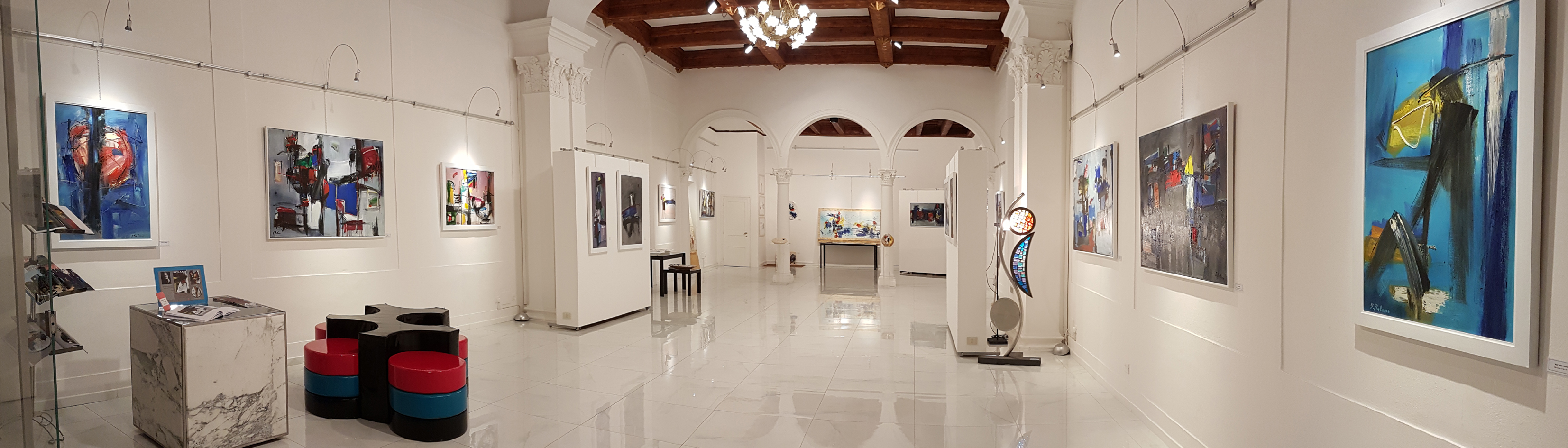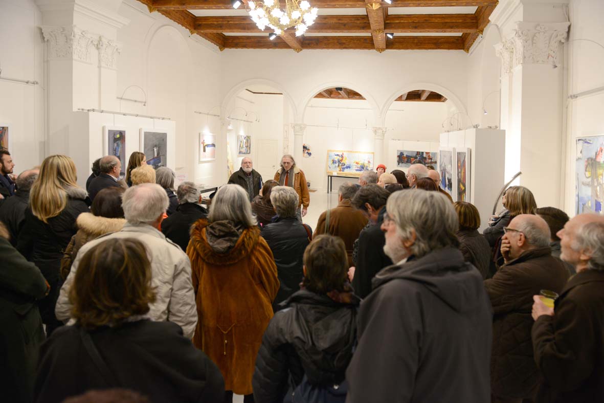 La gallerista Beatrice Cifuentes-Sarmiento riceve il pubblico e illustra egregiamente le opere.
