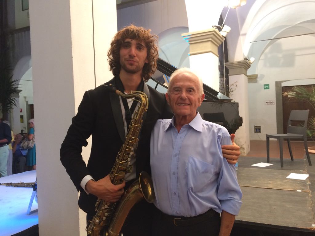 Composta emozione, nel chiostro De Laugier per Filippo d'Ecclesiis, veterano della Filarmonica G. Pietri di Portoferraio, il benemerito (e non aiutato come si dovrebbe) sodalizio nel quale, a otto anni, mosse i primi soffi Jacopo, proprio sotto la guida di Filippo, lietissimo che l'allievo abbia superato il primissimo maestro.