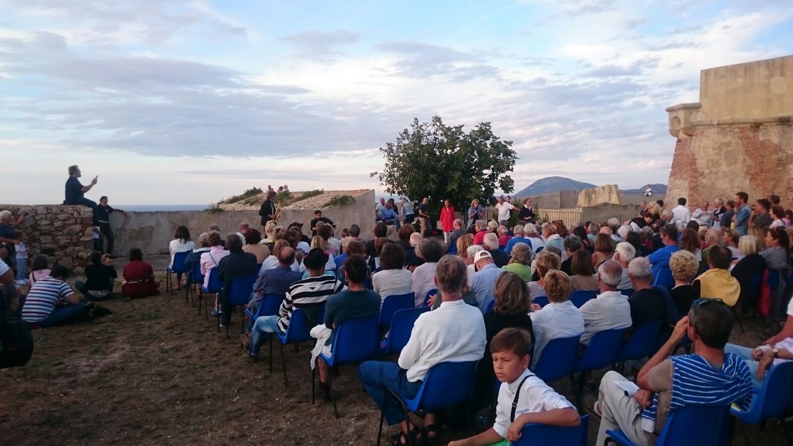 Nel suggestivo scenario del Forte Falcone al tramonto, accompagnato dal bravo fisarmonicista Samuele Telari, ha eseguito un accattivante selezione di brani per virtuosi dello strumento, da Piazzolla a Galliano, da Girotto a Iturrialde passando per Paulsson, Dulbecco, Nazareth e i Capricci di Paganini.
