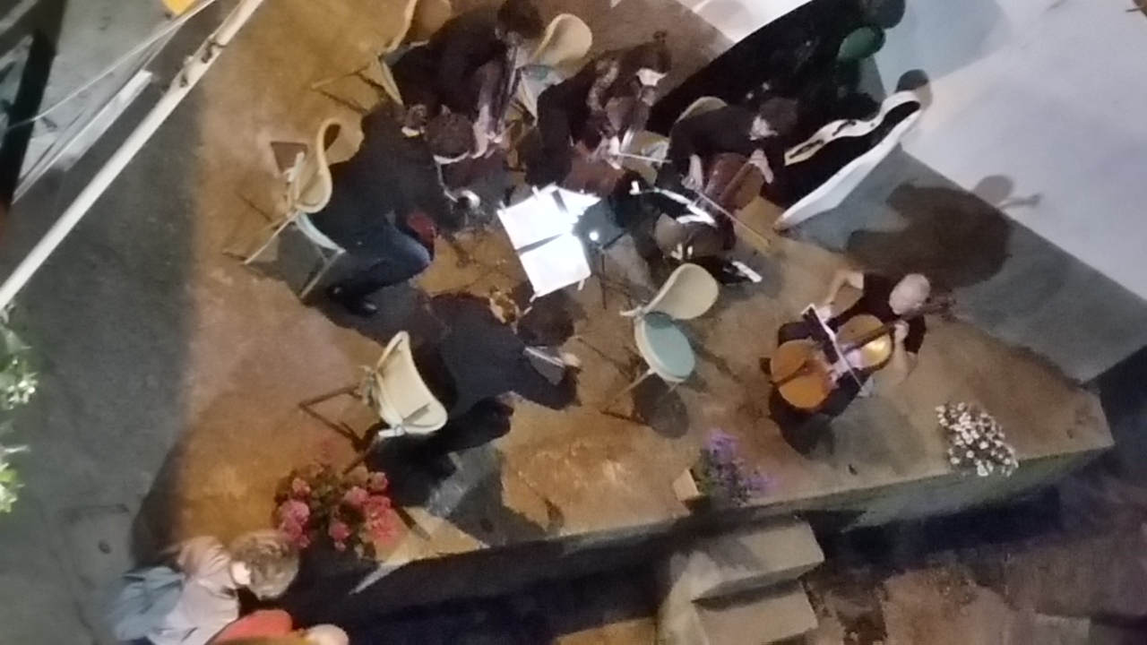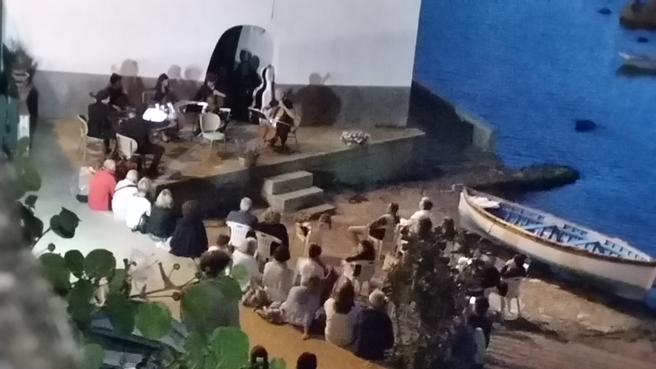 Alle 21,30 gli ospiti, quasi 200, si sono disposti ovunque come in una grande festa di paese. Dopo la presentazione della serata da parte della sindaca di Marciana Marina, Gabriella Allori, gli archetti hanno toccato le corde e la platea è caduta in un silenzio rapito.