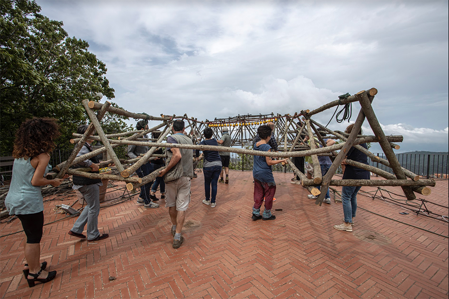 Un’opera dalla natura per la natura, un elemento simbolico, una soglia di passaggio dal bosco al mare che richiama l’archetipo della casa, dedicata all’unione del cielo e delle isole dell’Arcipelago Toscano.