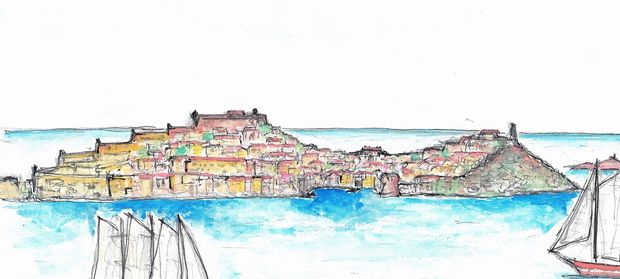 Oltre che a inserirmi nella schiera degli autori che quest’anno hanno lavorato per l'evento, desideravo soprattutto celebrare Portoferraio, senza dubbio opera del condottiero fiorentino, come una delle più belle città di fondazione del nostro paese che merita altrettanta attenzione da parte del grande pubblico quanto i forse più celebri – o sicuramente più celebrati - borghi e città minori dell’entroterra toscano; Portoferraio non deve essere solo un luogo da visitare nelle vacanze balneari, magari in tutta fretta e con lo stato d'animo di chi il giorno della partenza aspetta il traghetto per il rientro dalle ferie, ma perché è un luogo unico, dai colori, vedute, contrasti e dettagli architettonici senza pari, dove magari bisognerebbe passarci almeno la giornata intera, in un vagabondare interrotto solo da un tonificante bagno alle Viste, ai piedi dei bastioni medicei.