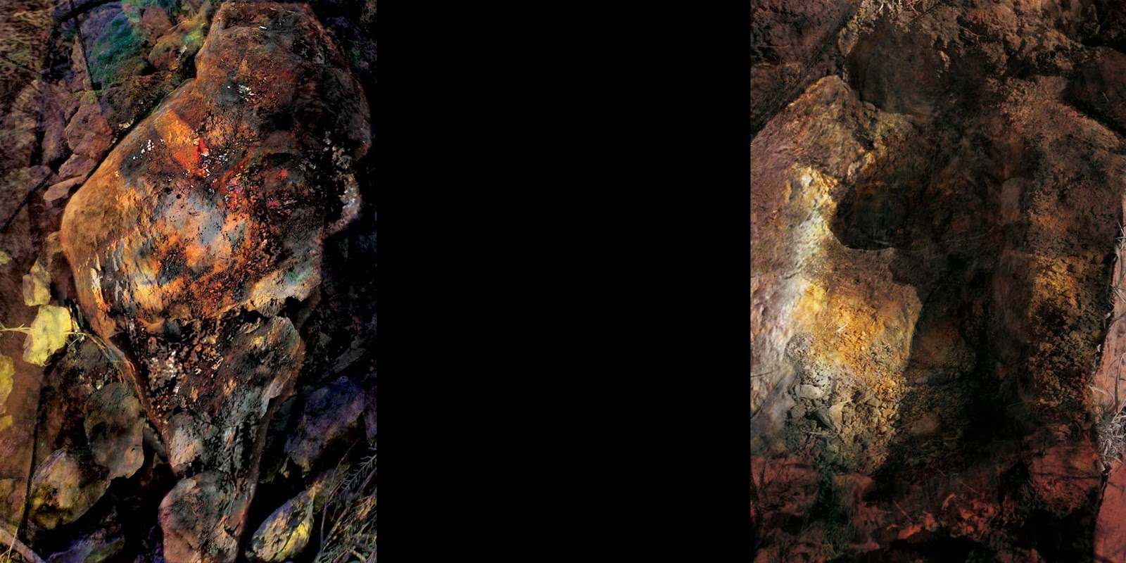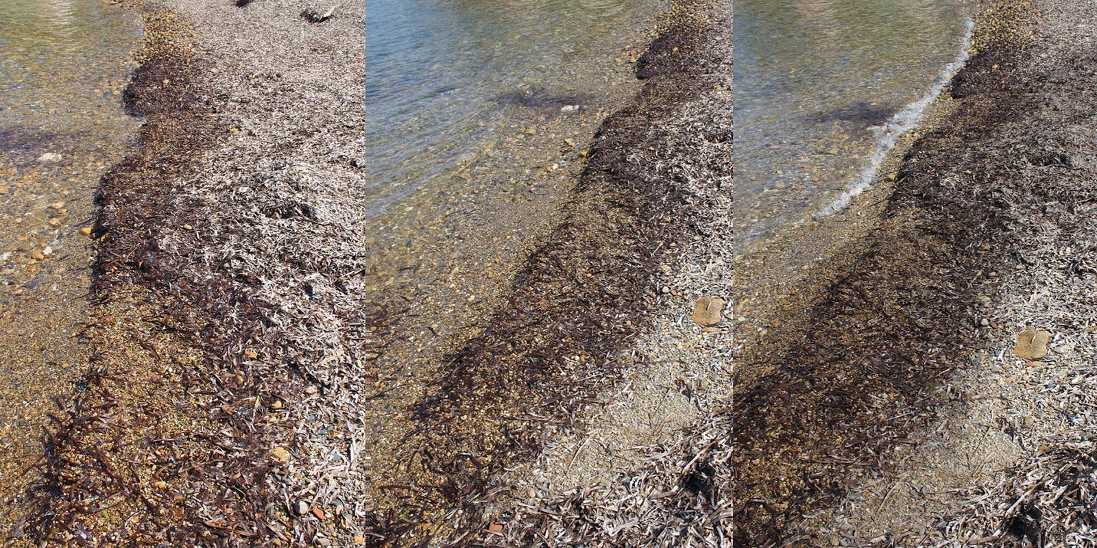 Ma torniamo all'opera <<Grande Madre – unmaredisilenzio>>. Stampata in digitale su forex (240 x 120cm), è la documentazione dell'atto performativo realizzato all'Enfola. <<Il luogo originario del ciottolo – spiega l'autrice - è la roccia madre e le pietre nel tempo non sono mai in altro luogo per caso. Generato da forze primordiali della Natura, nel suo silenzioso movimento il Mare restituisce una folla, una moltitudine di famiglie litologiche. Sulla riva nord del mare di Enfola, in una spiaggia autoctona che presenta numerosi elementi di interesse ambientale, confinante con una spiaggia turistica, nascono e muoiono, in sei giorni diversi, sei Grandi Madri tra i ciottoli e le alghe che il mare raccoglie, porta con sé e restituisce in una continua trasformazione e nel rispetto della biodiversità spontanea. Il trittico documenta una giornata di intervento in natura>>.