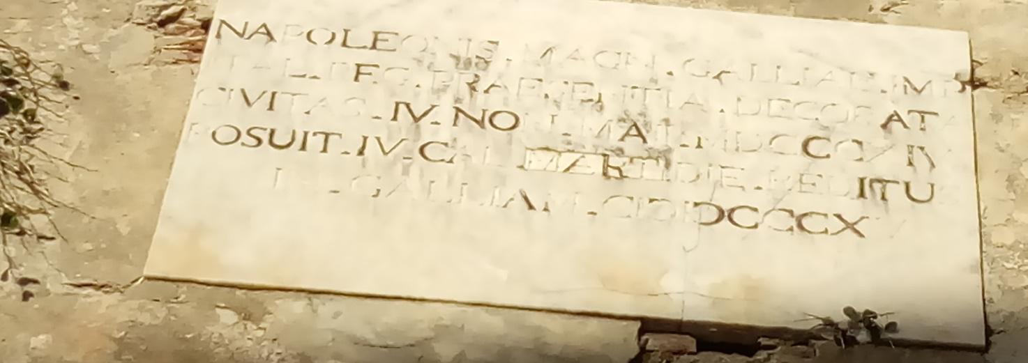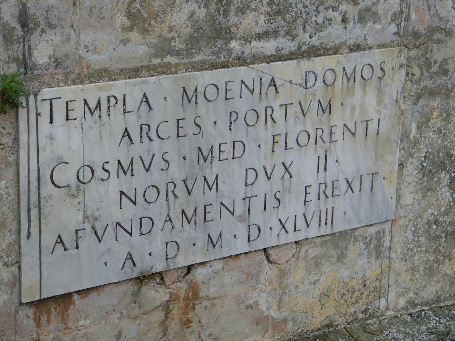 Quattro epigrafi si trovano scolpite su pietra (lastra di marmo) fissata sul muro d’ingresso al forte della Stella in Portoferraio (vedi foto copertina).