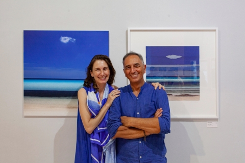 Ne nascono fotografie dall’alto stranianti realizzate con la tecnologia del drone, collages in carta vetrata dipinta e opere a quattro mani che sovrappongono su livelli trasparenti fotografia e pittura in un’alternanza che confonde per creare un’unica immagine.
