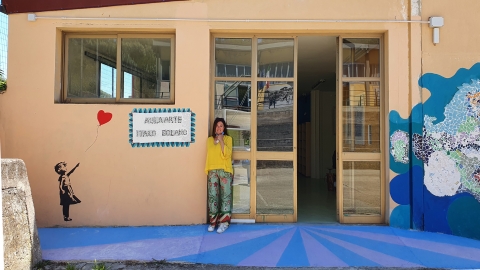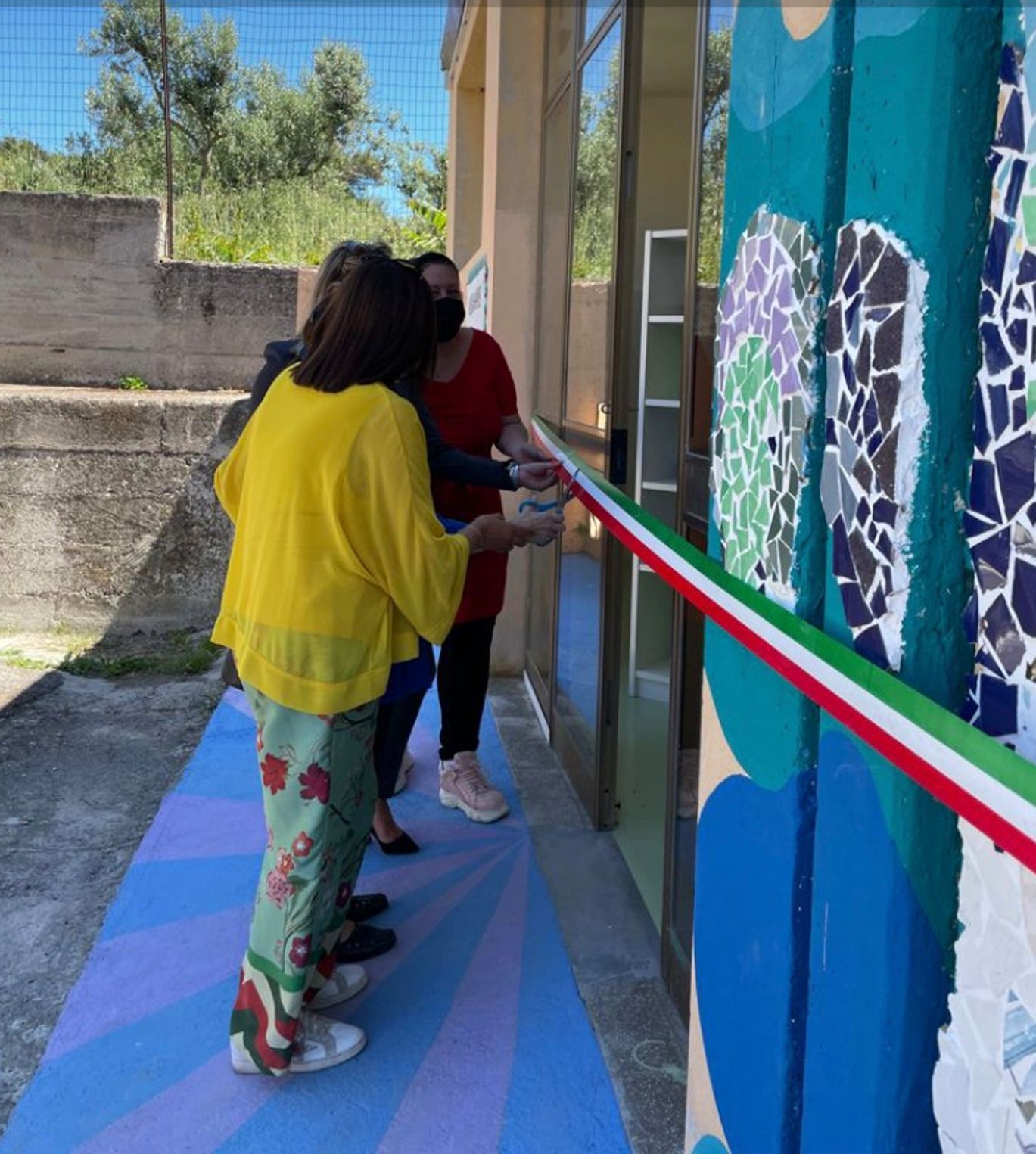 Con il taglio del nastro tricolore l’Aula d’arte Italo Bolano è stata ufficialmente inaugurata e aprirà le sue porte alle future creazioni dei giovani alunni anche grazie ai barattoli di colore originali di Italo che Alessandra ha voluto simbolicamente donare.