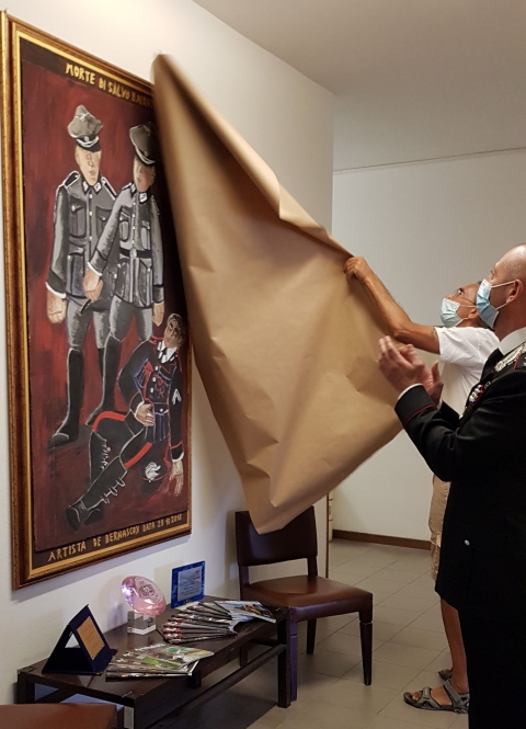 Di seguito un breve passaggio delle parole di ringraziamento del Capitano Materiale: “… un artista può realizzare ciò che sente indipendentemente dal momento storico, dall’estrazione politica o culturale e dall’influenza religiosa. Probabilmente è proprio attraverso l’arte che l’uomo può tornare a essere bambino… un ringraziamento particolarmente sentito all’autore che, dimostrando fortissimo attaccamento all’Arma dei Carabinieri, ha potuto donare la sua apprezzatissima opera grazie al supporto del responsabile e di tutti gli operatori del centro Bauhaus di Portoferraio…”.