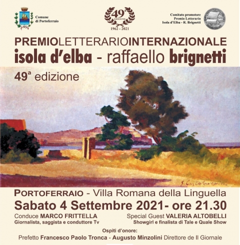 R. Innanzitutto voglio ricordare che per prendere parte alla cerimonia di premiazione che si terrà sabato 4 settembre alle ore 21:30 presso la Villa Romana della Linguella è obbligatoria la prenotazione presso La Libreria Stregata di Portoferraio che risponde al nr. telefonico 0565/193.04.64, inoltre come da disposizioni ministeriali, tutti i presenti dovranno essere in possesso di Green pass.