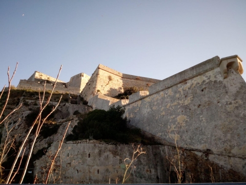 NELLA FOTO DI COPERTINA: Portoferraio. Fronte di terra saliente di nord ovest (Dal basso in alto) Bastione di S.Alessandro, Tenaglia, S. Ferdinando, Carciofaia, fianco del fronte di Sorbelloni, forte Falcone