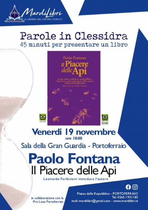 Il meteo degli ultimi giorni non ci consente più di ospitare i nostri clienti nella piazzetta ma, stabilita una buona collaborazione con la Proloco di Portoferraio, riusciremo a portare avanti la nostra rassegna letteraria e siamo lieti di ospitare un grande naturalista, entomologo, scienziato e apicoltore come Paolo Fontana.