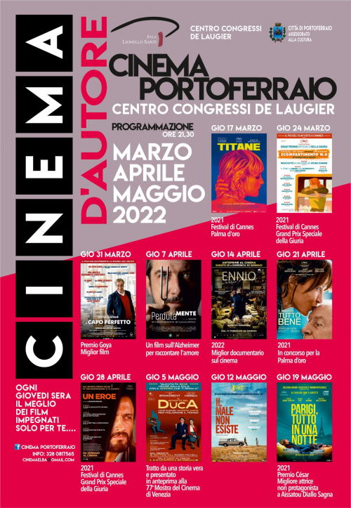 Al Cinema di Portoferraio "Nello Santi" riparte la rassegna "Cinema d'Autore" che ci accompagnerà tutti i giovedì, a partire dal 17 marzo, alle ore 21.30 con i film più impegnati e premiati 2021/2022.