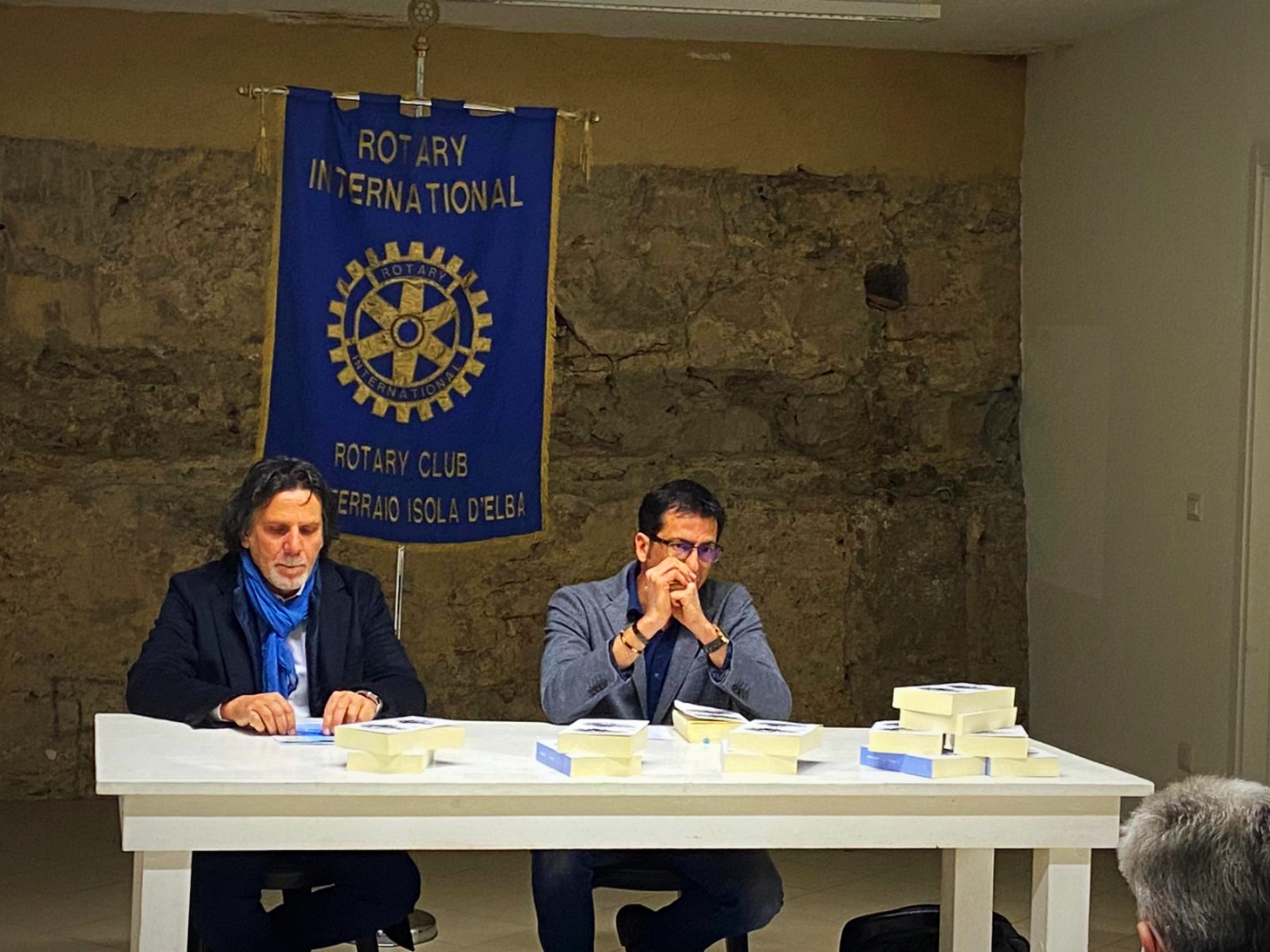 Al termine della serata, al fine di contribuire alla lodevole iniziativa, tutt'ora in corso, promossa dal Rotary elbano e volta alla raccolta dei fondi necessari per portare aiuti all'Ucraina, l'autore ha devoluto al Club l'intera cifra ricavata dalla vendita dei libri.