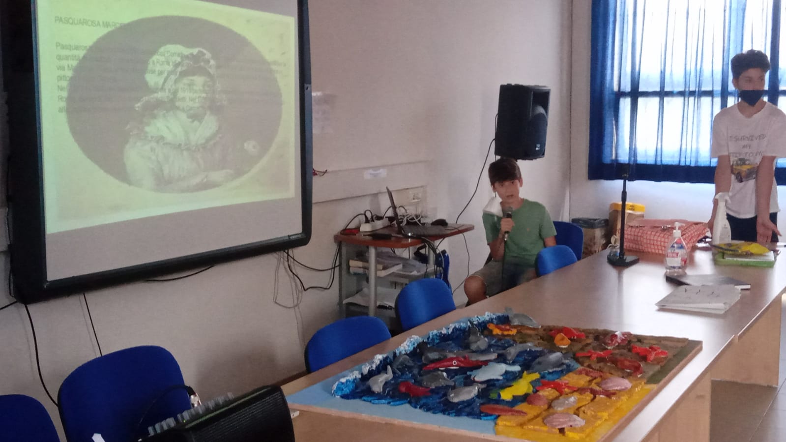 Tutti i ragazzi hanno elaborato una presentazione, e alcuni le hanno presentate ai compagni ad al pubblico, dalla DS Daniela Pieruccini agli ospiti invitati per l’occasione, le artiste elbane Belinda Biancotti e Daniela Traverso, ed un gruppo di iscritti allo SPI Cgil (Angela Calistri, Anna Galli, Maria Panariello, Paola Domenici e Fabrizio Antonini).