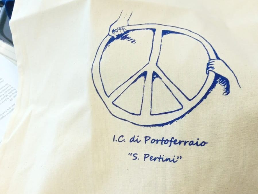 Menzione speciale a Elena Centurioni di 3 A, che utilizzando la tecnica della serigrafia ha creato una borsa con lo stemma della pace, che è stata donata alla Preside.