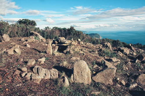 Piana alla Sughera per la sua concentrazione di tombe a cassetta e menhir, è senza dubbio uno dei siti più importanti dell’Elba preistorica. La piana sopra Seccheto offre un complesso unico di menhir aniconici, ossia senza decorazioni o immagini scolpite, che testimoniano le grandi civiltà che hanno dominato l'isola prima della nostra era ed evocano rituali religiosi ancora misteriosi. Molte domande rimangono sul significato di dare a questi menhir. Questi monoliti del primo neolitico possono essere monumenti funerari che rappresentano i Shardanes signori della guerra, I Popoli del Mare che per gli Egizi venivano dalle Isole dell'Occidente e sono rappresentati nei bassorilievi del tempio di Medinet-Abou in Egitto? Molto mistero gira ancora intorno a queste creazioni.