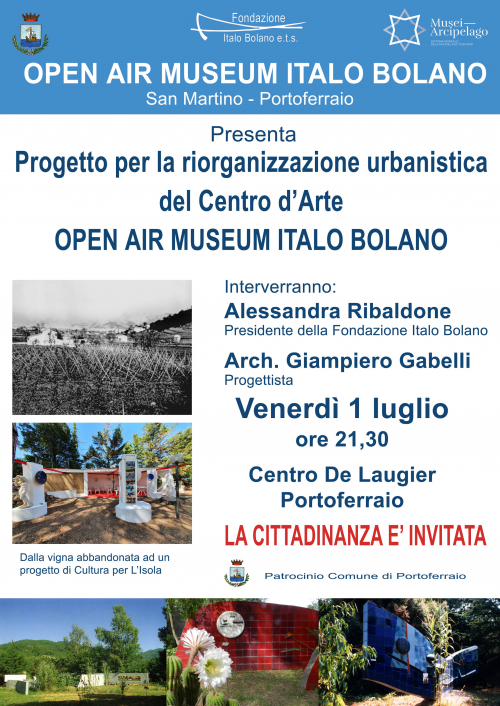 Venerdì 1 luglio, alle ore 21,30, nel chiostro del Centro De Laugier a Portoferraio verrà ufficialmente presentato il progetto di riqualificazione urbanistica dell’Open Air Museum Italo Bolano, che gode del patrocinio del Comune di Portoferraio.