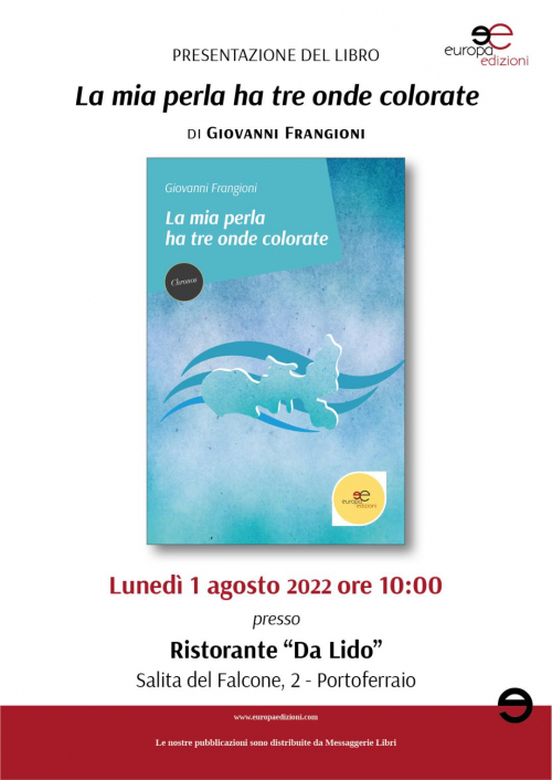 Lunedi 1° agosto alle ore 10,00 presso il ristorante "Da Lido" a Portoferraio si terrà la presentazione del libro di Giovanni Frangioni "La mia perla ha tre onde colorate" edito da Messaggerie Libri.