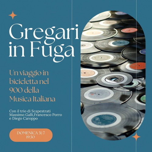Finalmente la formazione in acustico degli Scapestrati arriva a Mardilibri domenica 31 luglio, dalle ore 19:30, con GREGARI IN FUGA, viaggio in biciletta nel ‘900 della musica italiana.