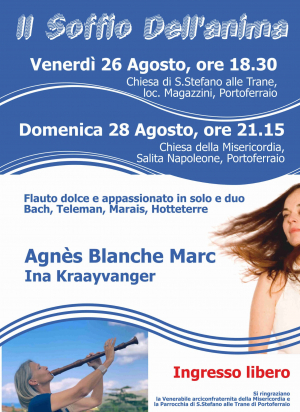 Vi aspettiamo quindi venerdi 26 agosto presso la Chiesa di Santo Stefano alle Trane (località Magazzini - Portoferraio) e domenica 28 agosto nella Chiesa della Misericordia (Salita Napoleone - Portoferraio).