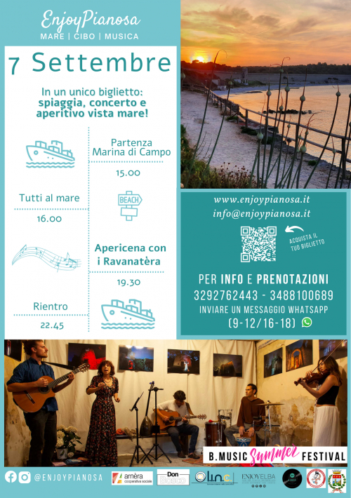 Il biglietto comprende: viaggio a/r Campo nell’Elba-Pianosa, apericena e concerto!