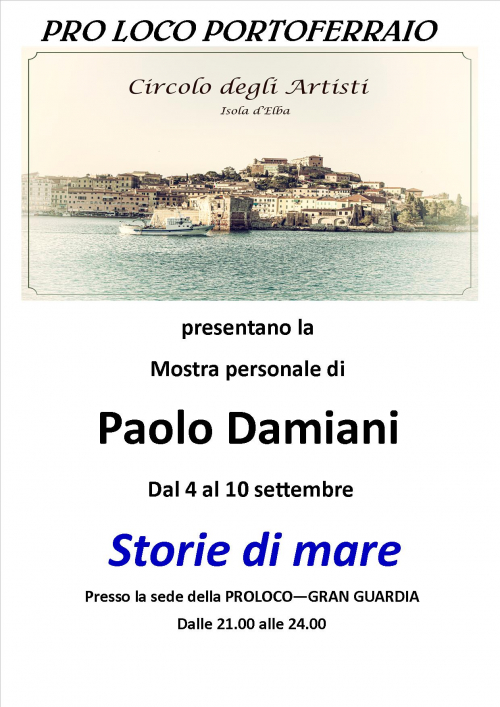 Si apre domani 4 settembre ore 18 a Portoferraio, nella centralissima Piazza Cavour, presso i locali della “Gran Guardia”, la mostra di Paolo Damiani.