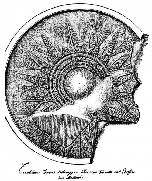 Il T. Colonnello Mellini mi ha diretta la lettera che trasmetto a V.E. nel suo originale,dalla quale si compiaceva riscontrare che l’istesso Sig. Mellini l’escavazione nel ( ) determinato luogo à ritrovato degl’altri Pezzi d’antichità ch’egli mi ha mandato qui in custodia,d’alcuni dei quali ha poi anco ricavato il disegno e quale io mi faccio in dovere d’inviare all’E.V. perché voglia umiliarlo a S.A.I. e R.