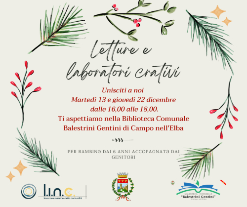 Martedì 13 e giovedì 22 dicembre vi aspettiamo in biblioteca dalle 16,00 alle 18,00 per leggere insieme delle storie sul Natale a cui seguiranno dei laboratori creativi per creare magiche decorazioni natalizie.