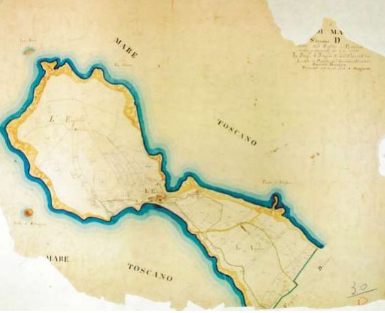 quadrati di territorio, di queste due terzi sono dirute e scoscese, mentre la parte rimanente è bassa e sabbiosa. Le grandi insenature, che mancano sia nella regione occidentale, sia in quella orientale, escluso il golfo di Mola a Porto Azzurro, sono presenti nella regione mediana, ricca di golfi e porti naturali. Esse spiegano l’importanza data all’isola nell’antichità, quando, fra La Spezia e Gaeta, sulla più importante rotta del Tirreno, antichissimi navigatori trovarono sicuro approdo e rifugio.