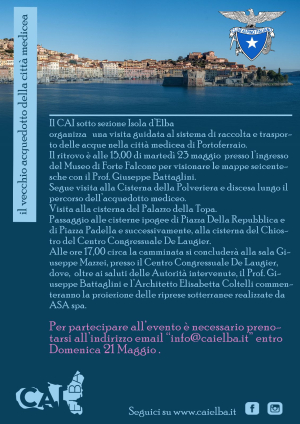 La visita alla città medicea di Portoferraio, a causa del brutto tempo, è rimandata a martedì 23 maggio ore 15,00.