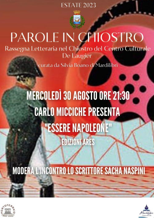 Mercoledì 30 agosto, alle 21:30, lo scrittore Sacha Naspini intervisterà Carlo Miccichè, giornalista ed esperto di televisione che nel suo scritto “Essere Napoleone” di Edizioni Ares racconta – fuori da cliché e stereotipi – le vicende del grande personaggio che per l'Elba assume un significato tutto peculiare. Quello che Miccichè fa è ripercorrere, “appoggiandosi” ai racconti e alla voce di scrittori, filosofi, sceneggiatori, registi e illustratori, le linee che delineano l'uomo e il personaggio, un mondo di cui si è parlato da sempre ma che ogni volta sembra quasi inesplorato, da quanto affascinante.