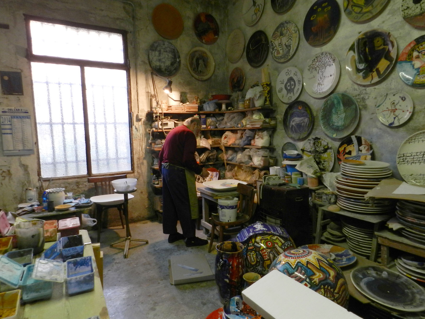 Entrando nella vecchia officina dai muri scuriti dal tempo, si possono ammirare, appesi fitti fitti alle pareti, piatti e pannelli di ogni dimensione che portano firme illustri, un vero ”Museo” di arte ceramica senza eguali.
