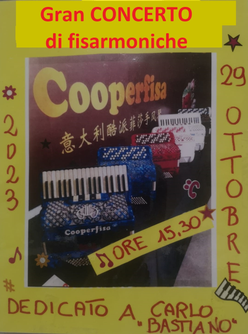 Domenica 29 ottobre, alle ore 15.30, "Gran concerto di fisarmoniche". Un'iniziativa, questa volta aperta a tutti, in cui sarà anche possibile ammirare fisarmoniche storiche.