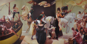 Il dipinto completato in 30 giorni ed eseguito in modalità “porte aperte”, vide la partecipazione attiva della città con diversi cittadini portoferraiesi che posarono per l’artista in qualità di figuranti.