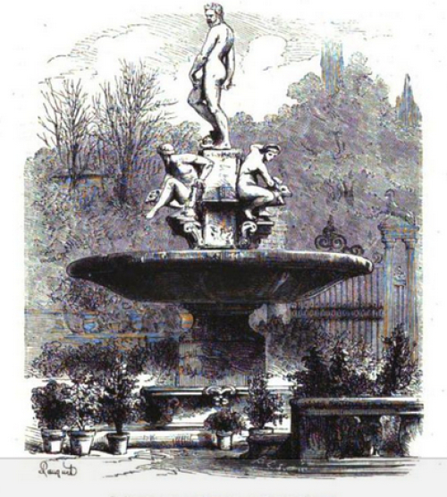 Didascalia dell'immagine: La fontana di Boboli con la tazza di granito dell'Elba. Da: Museo di famiglia. Rivista illustrata, Anno V, volume V, anno 1865.