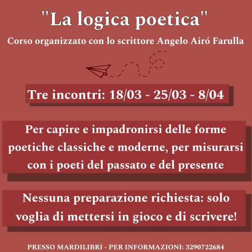 Un corso sintetico guidato dallo scrittore Angelo Airò Farulla che intende avviare alla consapevolezza degli strumenti pratici e critici del fare poetico.