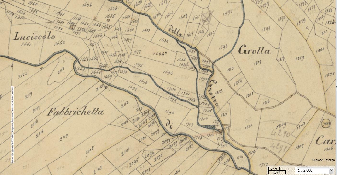 Un mulino in questa posizione strategica era di vitale importanza per la comunità locale. La sua presenza è documentata fin dal 1840 nella mappa del Catasto Leopoldino, dove si possono chiaramente vedere il mulino e il suo laghetto.