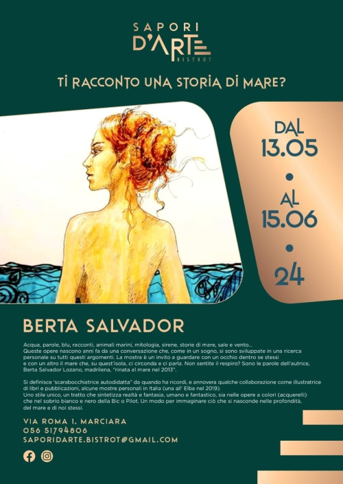 Apertura della mostra 'Ti racconto una storia di mare?' con aperitivo, oggi, lunedì 13 Maggio alle 18e30 a 'Sapori d'Arte', il Bistrot che da qualche ha scommesso - riuscendoci - sulla possibilità di coniugare il bello (delle mostre personali) e il buono (dell'enogastronomia proposta).