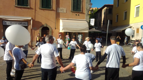 L'artista Giancono Cammarano ha realizzato un dipinto su tela mentre venivano eseguite musiche. All'esterno, intanto, è arrivato il corteo dell'associazione Tip Tap One. Dietro alla bandiera della pace, con maglietta e palloncino bianchi, ragazzi e adulti hanno sfilato per poi dar vita, in piazza Cavour, ad un girotondo attorno al drappo arcobaleno. La canzone di Lennon, Imagine, ha fatto da sottofondo del coinvolgente ballo di coppia, a cui è seguito un tango sulla bella voce di Rosita.