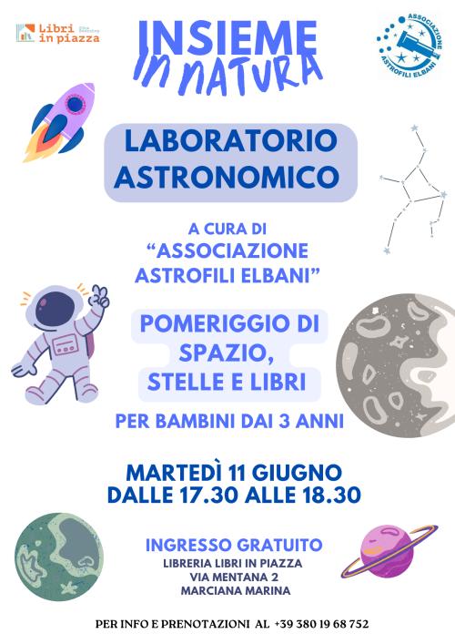 La libreria Libri in Piazza, con la cura dell’associazione Astrofili Elbani - da sempre in prima linea nella promozione e diffusione della cultura scientifica - organizza il laboratorio astronomico “Insieme in natura” un pomeriggio dedicato alla spazio, alle stelle e ai libri.
