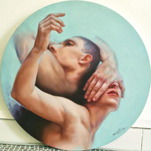 Belinda è un animo inquieto, che dipinge da sempre, alla ricerca continua e rigorosa di nuovi spunti, con corpi e mani che si intrecciano in complessi studi anatomici che perfeziona e talvolta distrugge in sfondi che si dissolvono per poi ricomporsi, quasi a simulare il suo animo, sempre alla ricerca, come si addice agli artisti, mai paghi del loro lavoro e sempre tesi ad esplorare nuovi percorsi espressivi per uscire dal loro “esilio” spirituale.