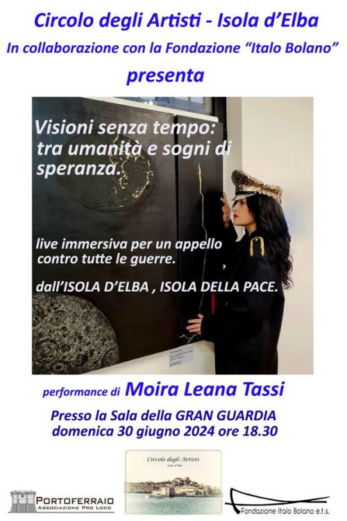 Domenica 30 giugno alle 18:30, presso la storica sala della Gran Guardia di Portoferraio, si terrà, a grande richiesta, la replica della performance "Visioni senza tempo: tra umanità e sogni di speranza". Questa suggestiva esibizione è ideata ed interpretata dall'artista tifernate Moira Lena Tassi, nota per le sue opere e progetti che intrecciano elementi di riflessione sociale e poetica artistica.