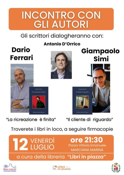 Venerdì 12 luglio, alle ore 21.30 in Piazza Vittorio Emanuele a Marciana Marina, la Libreria Libri in Piazza ospiterà tre grandi personaggi della cultura italiana: Gli scrittori Dario Ferrari e Giampaolo Simi intervistati dal critico letterario Antonio D’Orrico.