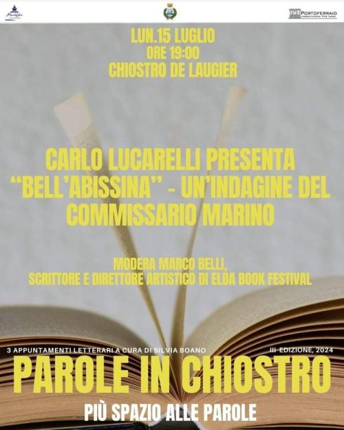 Lucarelli presenterà “Bell'Abissina. Un'indagine del Commissario Marino” (Mondadori) e sarà accompagnato da Marco Belli, scrittore e direttore artistico di Elba Book Festival, la rassegna culturale annuale che si svolge a Rio nell'Elba dal 16 al 19 luglio 2024.