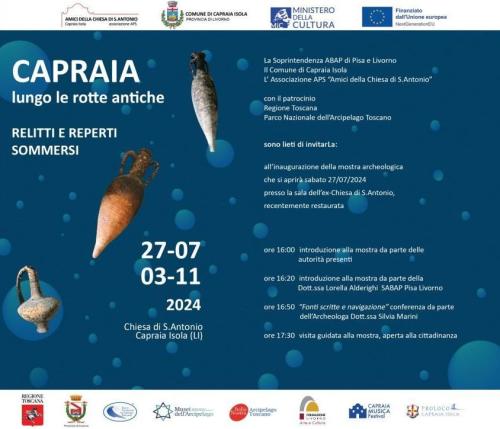 Chi almeno una volta si è immerso nel mare di Capraia, ha scoperto un mare trasparente e fondali intatti, che nascondono veri e propri tesori archeologici. A farci scoprire la bellezza di questi reperti è la mostra “Capraia lungo le rotte antiche: relitti e reperti sommersi” che verrà inaugurata il prossimo 27 luglio, alle ore 16.00 e proseguirà fino al 3 novembre.
