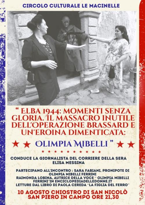 Sabato 10 agosto, alle ore 21:30, presso la fortezza di San Niccolò a San Piero in Campo, si terrà un incontro dedicato alla vita di questa lavandaia di Portoferraio che, durante la Seconda Guerra Mondiale, si offrì volontaria per salvare altre donne dalle violenze dei soldati francesi appena sbarcati sull'isola per quella che fu chiamata Operazione Brassard.