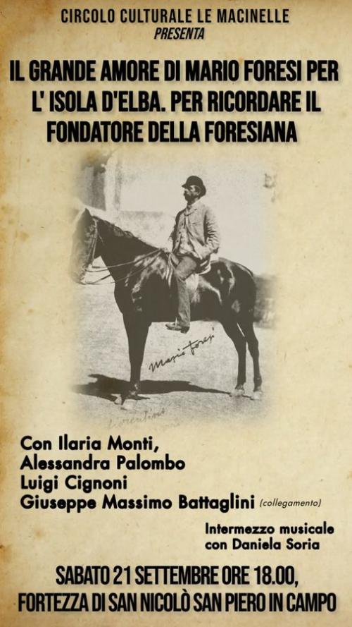 Saranno presenti: Ilaria Monti, autrice di diverse pubblicazioni sulla famiglia Foresi, Alessandra Palombo, ex dirigente del Comune di Portoferraio per il settore culturale, Luigi Cignoni, direttore della rivista Lo Scoglio, che ha dedicato l'ultimo numero proprio a Mario Foresi e alla Foresiana.