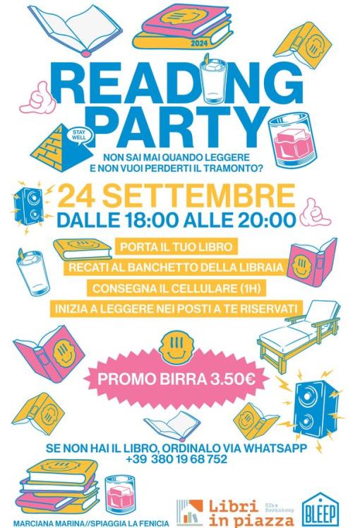 Questo quadretto idilliaco è possibile partecipando al Reading Party che la libreria Libri in piazza organizza nella spiaggia della Fenicia a Marciana Marina presso il Bleep Cocktails bar martedì 24 settembre dalle 18:00 alle 20:00.