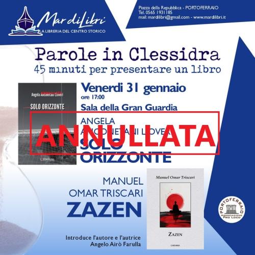 L'appuntamento con "Parole in clessidra" sarà riprogrammato in un'altra data.