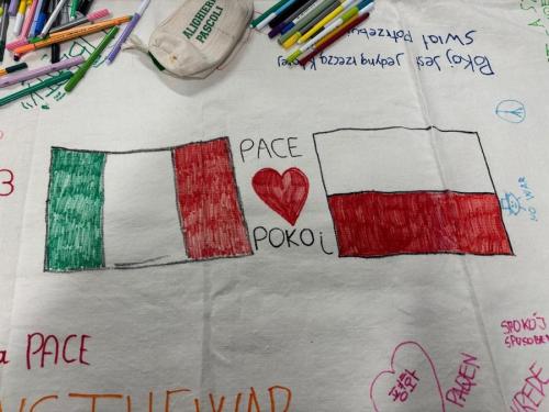 “Una parte della eco-bandiera è stata realizzata in collaborazione con studenti di diverse nazionalità, diventando un potente simbolo di unione tra i popoli: a Varsavia – dice Moira - nella "Szkoła Podstawowa nr 2 Przymierza Rodzin" il progetto è stato accolto con grande entusiasmo da parte dei docenti e degli alunni che insieme ad alcuni studenti della Alighieri- Pascoli di Città di Castello hanno dato il loro importante sostegno.